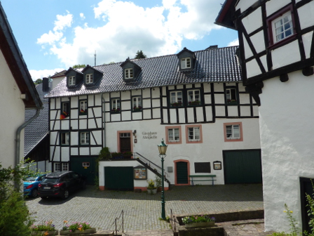 Das Wetter ist - wie bei den meisten Radtouren, die ich im Sommer 2012 unternehme, wechselhaft. Zeitweise ziehe ich die Regensachen an, dann ist es wieder brütend heiß. Blankenheim ist ein malerischer Fachwerkort, in dem die Ahr unter einem Gebäude entspringt.
