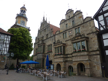 In Rinteln machte ich einen Abstecher in die schöne Innenstadt, hinter der es sich wieder bedrohlich türmte, doch bevor der Regen den Ort erreichte, war ich schon wieder unterwegs.