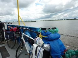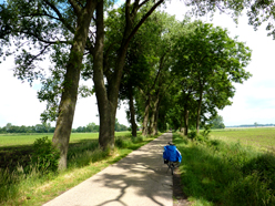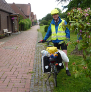 Als ich von Bremen wieder aufbrach, hatte ich plötzlich schon an der Schlachte einen Begleiter. Rudi, der mir nun 14 Kilometer lang treu bleiben sollte, mir interessante Abwege vom Weserradweg zeigte und pausenlos von seinem Leben (unter anderem eine Radtour bis zum Nordkapp) und von Bremen erzählte. Trotz seiner 78 Jahre hatte er einen kräftigen Antritt und ich musste mich anstrengen, mitzukommen. Zu guter Letzt bot er mir aus einer dicken Mappe Postkarten an, die er selber fotografiert hatte. Ich nahm ihm fünf Stück ab und konnte dann wieder alleine die schöne Strecke genießen.