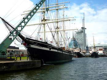 Die Fähre brachte mich schließlich über die Weser nach Bremerhaven, das den Besucher ein paar Tage lang mit seinen Museen und dem architektonisch ungewöhnlichen Klimahaus beschäftigen könnte. Als ich durch die Stadt schlenderte, ging ein eisiger Wind, der nur mit Zwiebeltechnik, also mehreren Kleidungsstücken über einander auszuhalten war.